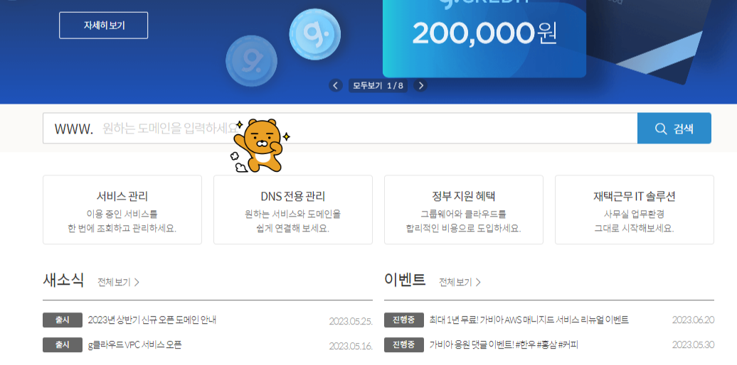- 검색창에 원하시는 도메인을 작성후 검색해주세요.