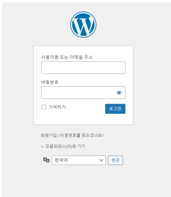 - "내주소. mycafe24.com/wp-admin"로 접속을 하시면 워드프레스 관리자 로그인 화면이 나옵니다.