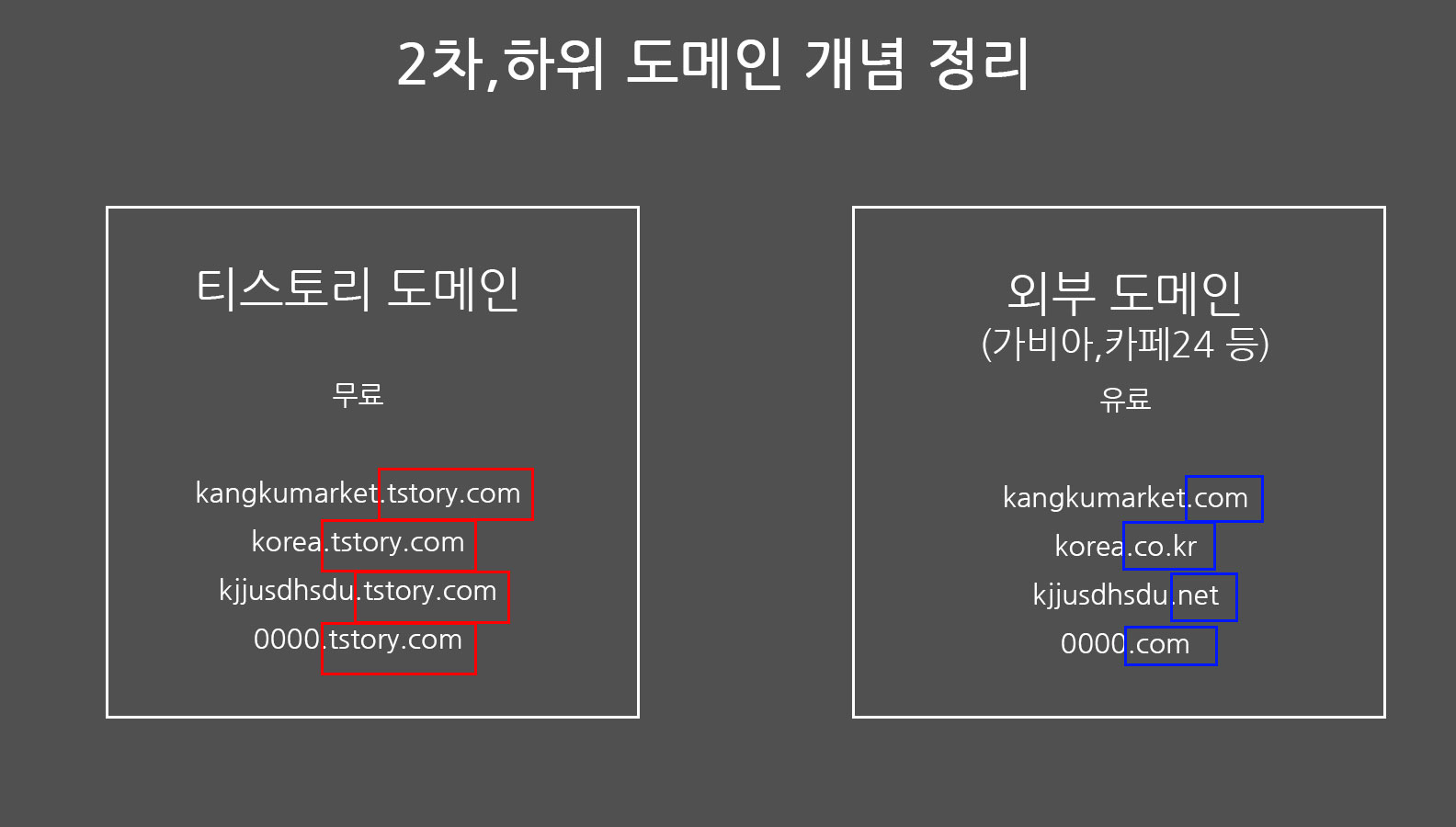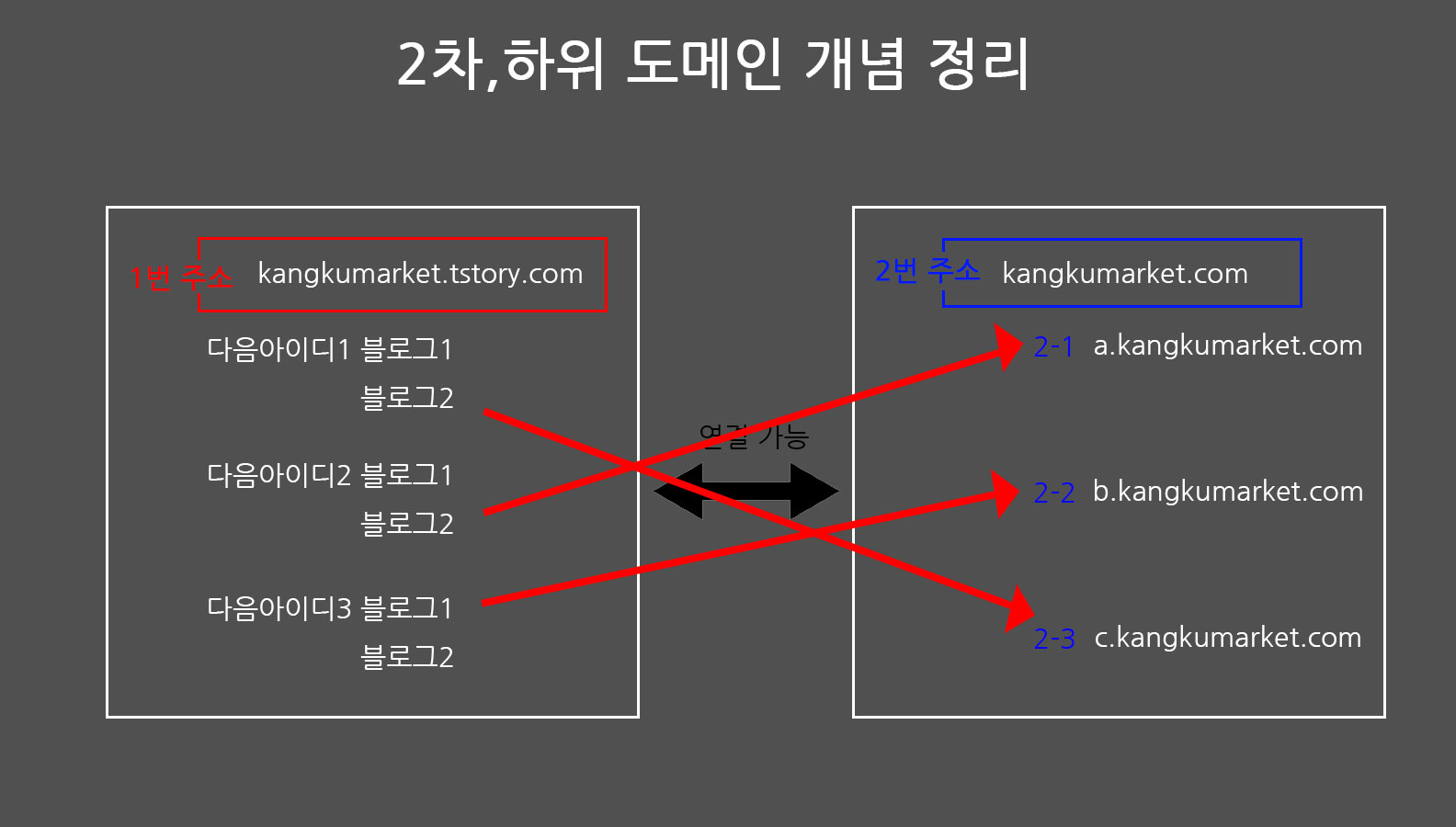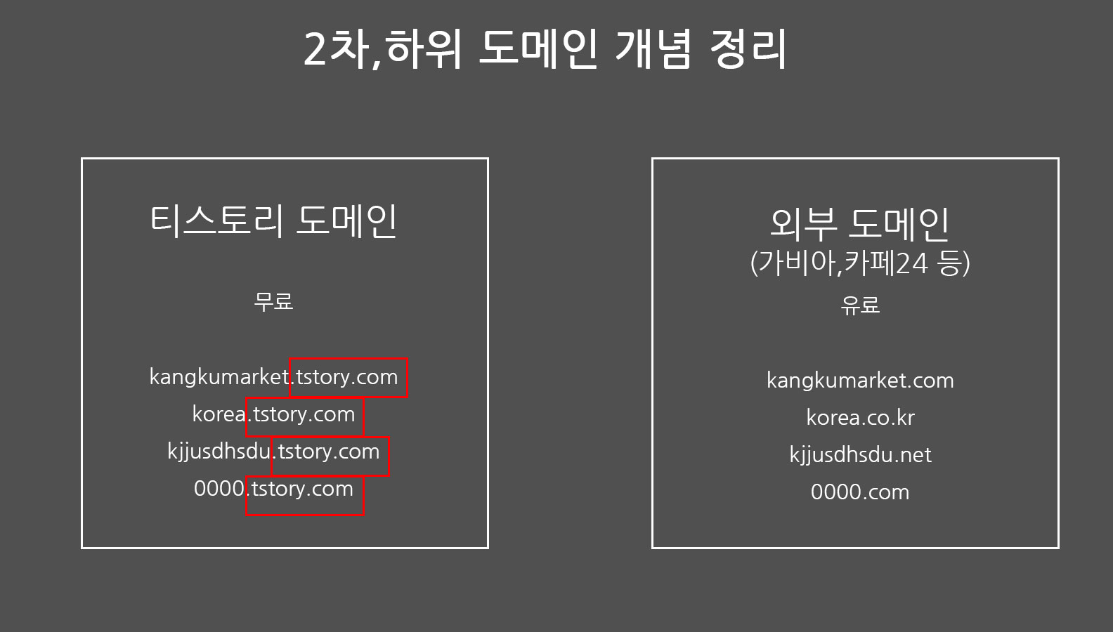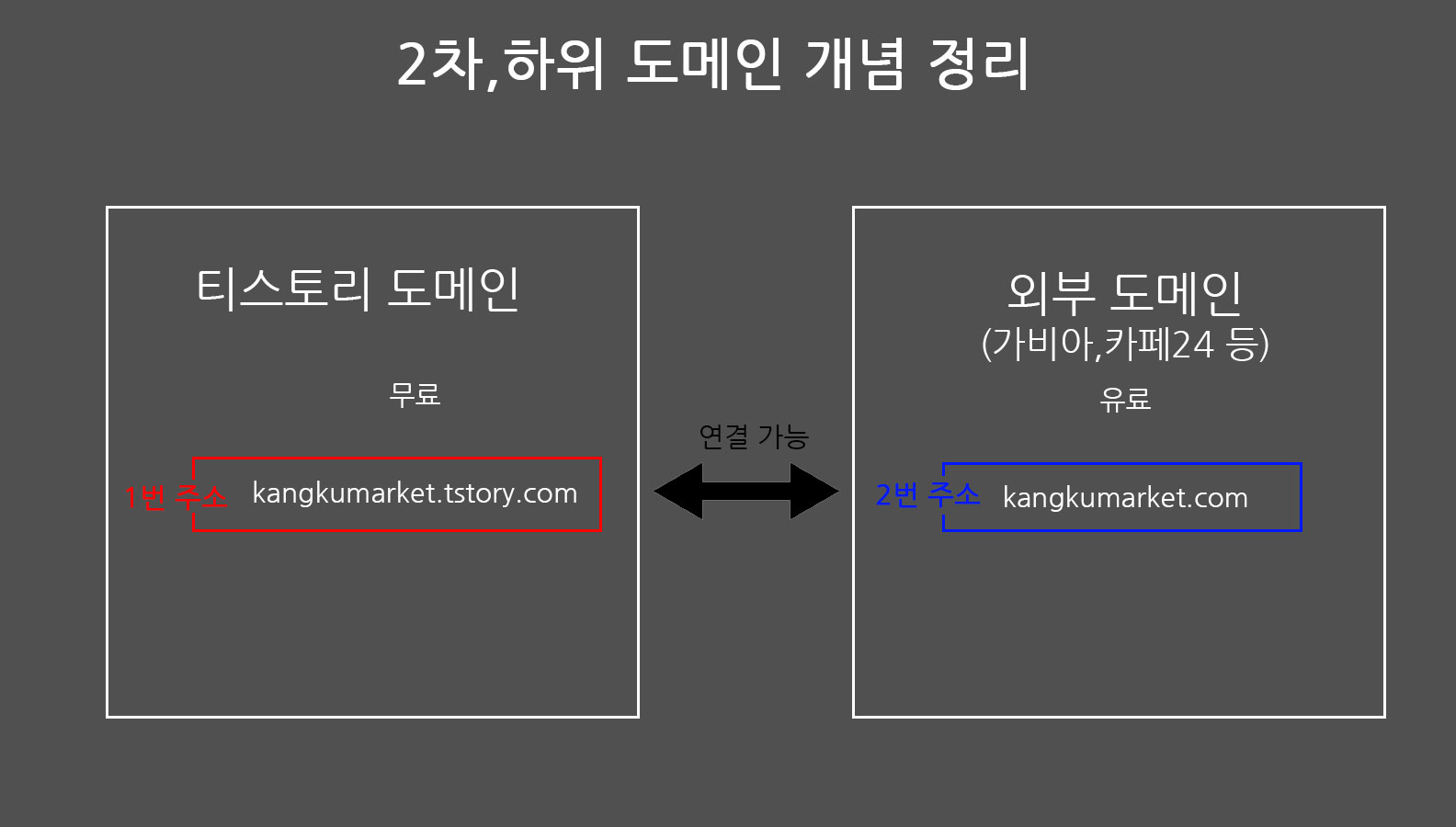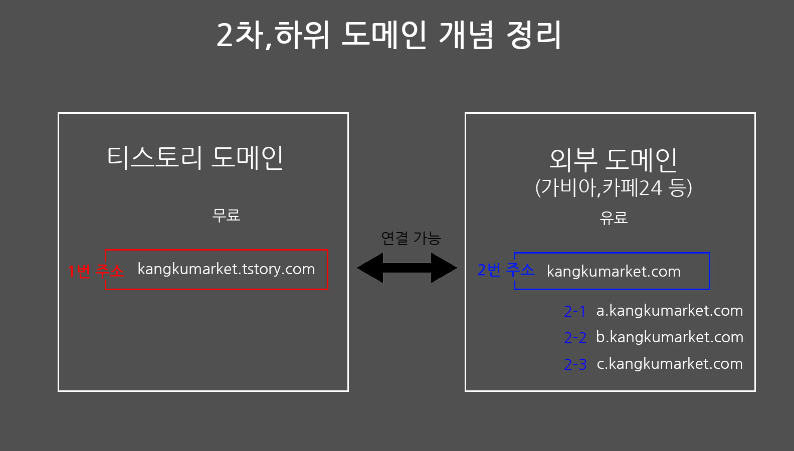 | 1차 도메인 | 티스토리 기본 도메인 | kangkumarket.tistoy.com |